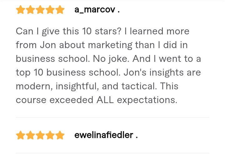 Hundreds of people have taken this course in order to learn the 7 secrets to creating content and marketing campaigns that go viral. Many people, both professionals and novices, have put the secrets to use and changed the trajectory of their businesses. Don’t be left behind. Find out more about this course here, or better yet, buy the course and get learning.