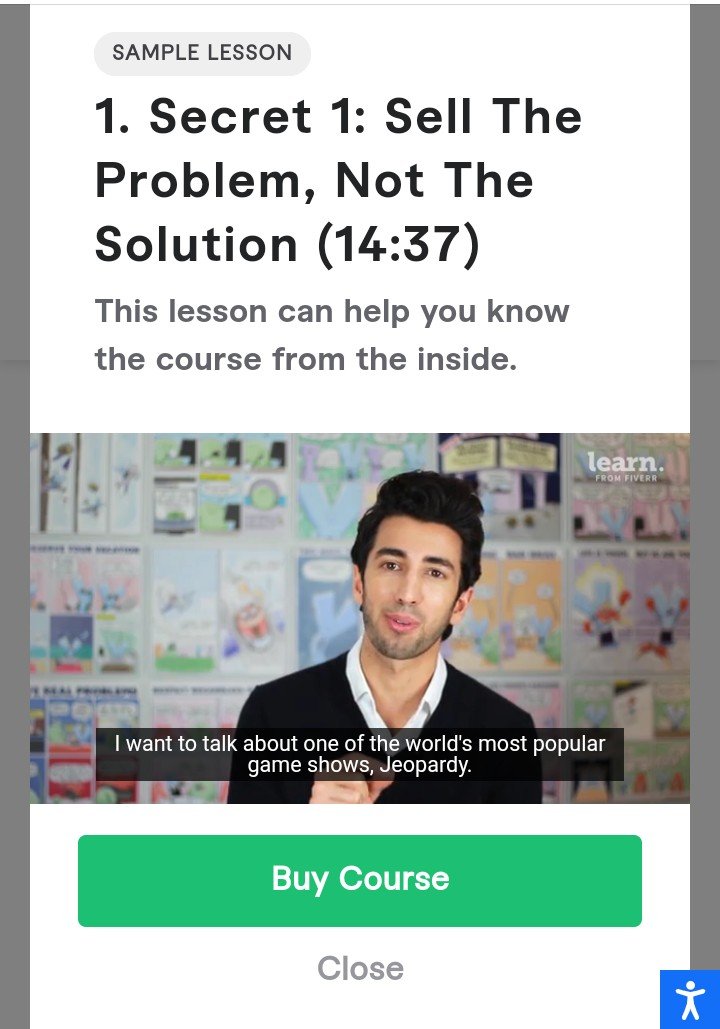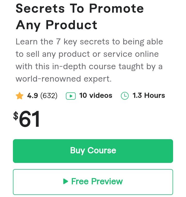 Course name: Viral Marketing: 7 Secrets To Promote Any Product Fiverr rating: 4.9 stars Number of videos included: 10 videos Total length of the course: 1.3 Hours Price: $61.00